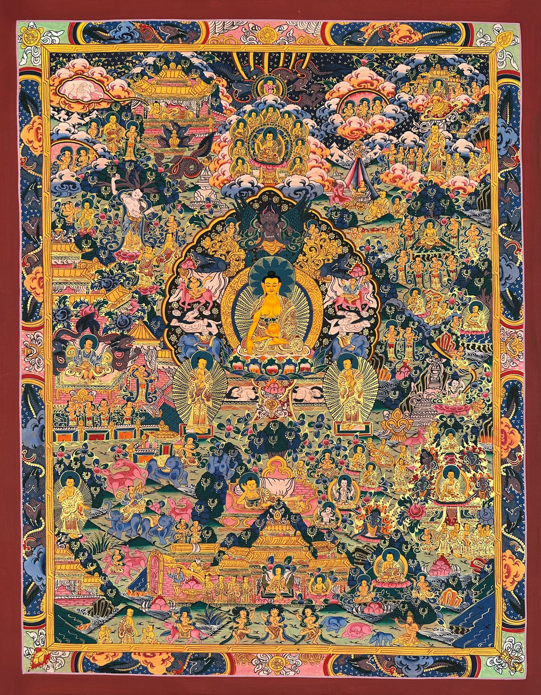 Thangka painting depicting Buddha Life Story is perfect for various home and office decor ideas....
