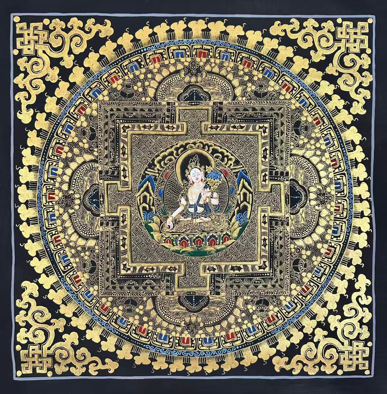 Thangka painting depicting Kalachakra Mandala is perfect for various home and office decor ideas. This 100% handmade Thangka can be decorated as an elegant and eccentric wall hanging in your home or office. It can also be placed in your home for meditation purposes, as well as an artifact to your spiritual seeking.
