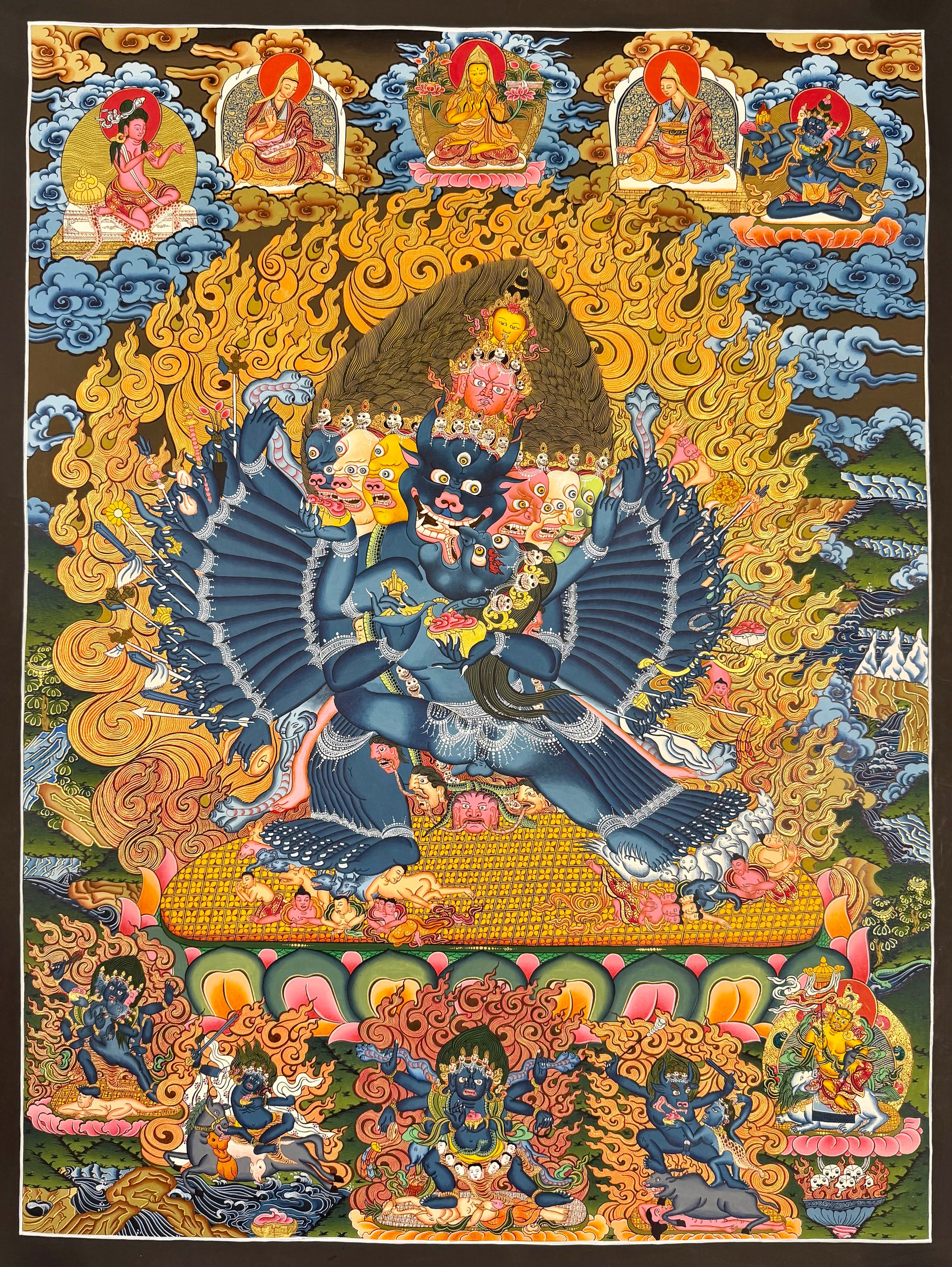 He is a buffalo-headed meditation deity of manifestation of the Bodhisattva Manjushri, a deity of Highest Yoga Tantra, and a dharma protector.